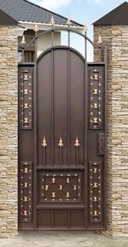 Кованые калитки привносят свою особенную нотку в общий вид участка. Их могут украшать цветы или металлические завитки, острые шпили, затейливые абстрактные или флористические узоры, плавные линии и острые углы, прутья разной толщины и формы. Вид узора кованых заборов, цвет металла и сочетание его с другими строительными материалами позволяет воплотить в реальность любые дизайнерские задумки.