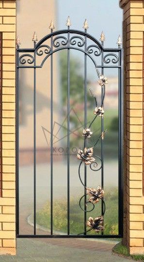 Кованые калитки привносят свою особенную нотку в общий вид участка. Их могут украшать цветы или металлические завитки, острые шпили, затейливые абстрактные или флористические узоры, плавные линии и острые углы, прутья разной толщины и формы. Вид узора кованых заборов, цвет металла и сочетание его с другими строительными материалами позволяет воплотить в реальность любые дизайнерские задумки.