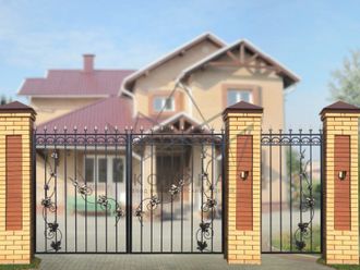 Кованые ворота привносят свою особенную нотку в общий вид участка. Их могут украшать цветы или металлические завитки, острые шпили, затейливые абстрактные или флористические узоры, плавные линии и острые углы, прутья разной толщины и формы. Вид узора кованых заборов, цвет металла и сочетание его с другими строительными материалами позволяет воплотить в реальность любые дизайнерские задумки.