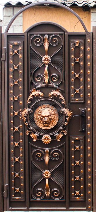 Кованые калитки привносят свою особенную нотку в общий вид участка. Их могут украшать цветы или металлические завитки, острые шпили, затейливые абстрактные или флористические узоры, плавные линии и острые углы, прутья разной толщины и формы. Вид узора кованых заборов, цвет металла и сочетание его с другими строительными материалами позволяет воплотить в реальность любые дизайнерские задумки.