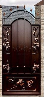 Кованые калитки привносят свою особенную нотку в общий вид участка. Их могут украшать цветы или металлические завитки, острые шпили, затейливые абстрактные или флористические узоры, плавные линии и острые углы, прутья разной толщины и формы. Вид узора кованых заборов, цвет металла и сочетание его с другими строительными материалами позволяет воплотить в реальность любые дизайнерские задумки.