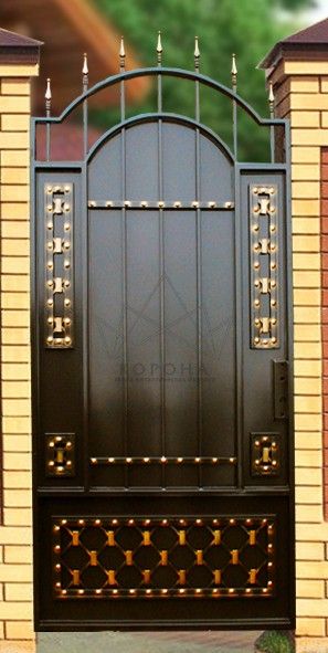 Кованые калитки привносят свою особенную нотку в общий вид участка. Их могут украшать цветы или металлические завитки, острые шпили, затейливые абстрактные или флористические узоры, плавные линии и острые углы, прутья разной толщины и формы. Вид узора кованых заборов, цвет металла и сочетание его с другими строительными материалами позволяет воплотить в реальность любые дизайнерские задумки.