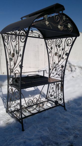 Комплектация: мангал, столик ( столешница – натуральный гранит Антик 18 мм), вертел, барбекю, дровница, колосники, подставка под казан (8л – 16л), кочерга, совок.