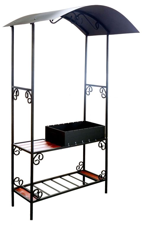 Для более удобной транспортировки мангал имеет сборно-разборную конструкцию: арка, козырек, стойка крыши и основание мангала.