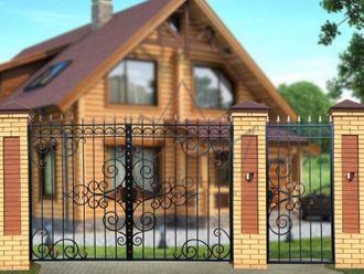 Кованые ворота привносят свою особенную нотку в общий вид участка. Их могут украшать цветы или металлические завитки, острые шпили, затейливые абстрактные или флористические узоры, плавные линии и острые углы, прутья разной толщины и формы. Вид узора кованых заборов, цвет металла и сочетание его с другими строительными материалами позволяет воплотить в реальность любые дизайнерские задумки.