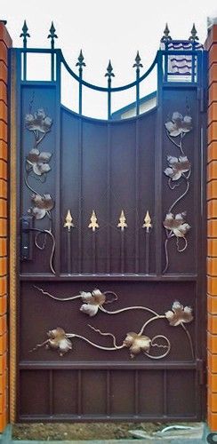 Кованые калитки привносят свою особенную нотку в общий вид участка. Их могут украшать цветы или металлические завитки, острые шпили, затейливые абстрактные или флористические узоры, плавные линии и острые углы, прутья разной толщины и формы. Вид узора кованых заборов, цвет металла и сочетание его с другими строительными материалами позволяет воплотить в реальность любые дизайнерские задумки.
